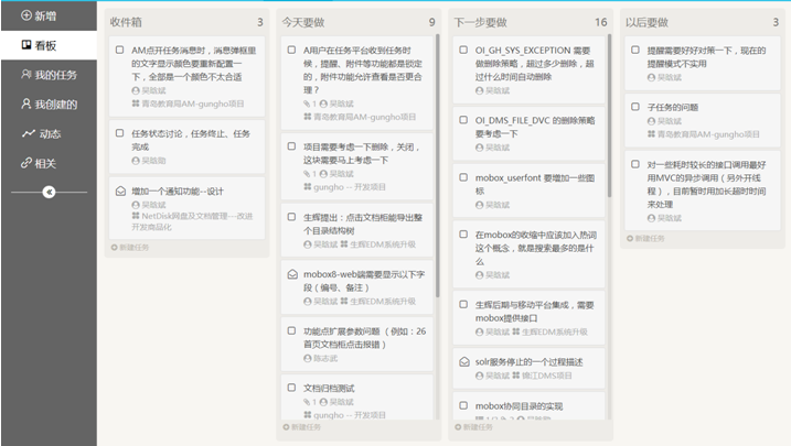 任務(wù)管理是企業(yè)協(xié)同的重要組成部分。 任務(wù)管理是企業(yè)內(nèi)部事務(wù)協(xié)同的重要工具,與傳統(tǒng)的OA有類似之處,都是推動(dòng)企業(yè)內(nèi)部事務(wù)有效快速的推進(jìn),但之前存在不同之處,OA是屬于剛性流程化的管理,側(cè)重于流程與規(guī)范,任務(wù)管理側(cè)重于人員、事務(wù)之間的協(xié)同,側(cè)重于靈活度與協(xié)同性上 從靈活度上看,可以用于企業(yè)各種事務(wù)的管理與處理,比如客戶進(jìn)展管理、開發(fā)進(jìn)度、產(chǎn)品設(shè)計(jì)等