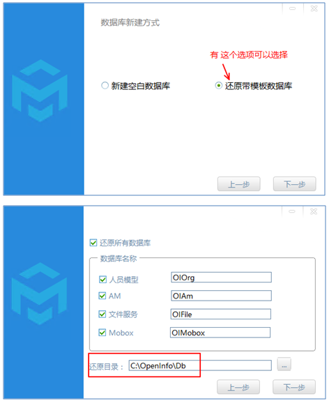 這些其實在企業(yè)系統(tǒng)正式部署前,需要做一些基本功能定義,這個定義后 ,最好對 OIAm、OIMobox、OIOrg、Oifile 等4個數(shù)據(jù)庫進行備份,直接還原到企業(yè)服務器上,這樣整體來說數(shù)據(jù)比較完整及正確。另外也相對方便。(注意:這種mobox還原的模式 只是適合與第一次系統(tǒng)部署。若用戶已經(jīng)部署過了,已經(jīng)有自己的數(shù)據(jù)了,這個bak還原的模式是不適合的,要切記??!)