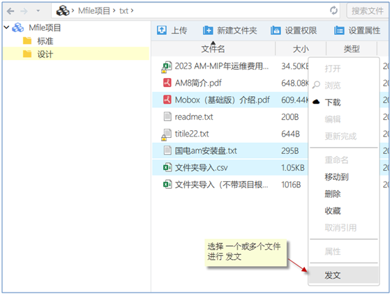 • 選擇一個或多個文件,右鍵,進(jìn)行發(fā)文