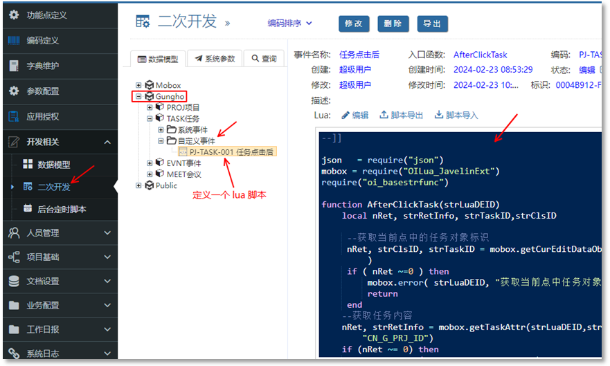 - 進(jìn)入二次開發(fā) – gungho領(lǐng)域 – TASK任務(wù) – 自定義事件