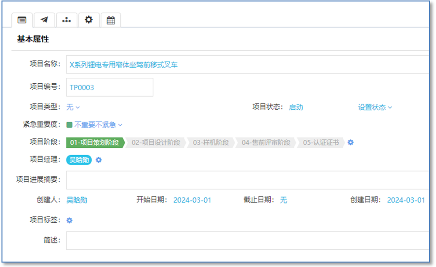 項目階段(可設(shè)置當前階段)、項目狀態(tài)