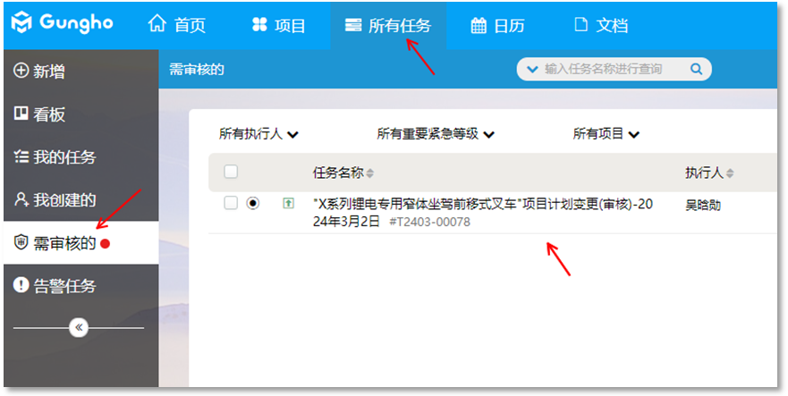 相關(guān)人收到審批需求的時候,會在審批人的“需審批的”任務(wù)里面列出