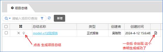 國家某試驗中心,在試驗項目完成后,進入該項目,點擊“總結(jié)” ,進行試驗報告自動生成。(實現(xiàn)檢測報告電子化)