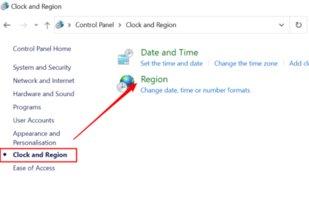 1)Control Panel – Clock and Region – Region