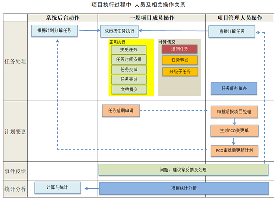 當(dāng)項(xiàng)目計(jì)劃審批通過正式生效后,該版本的項(xiàng)目計(jì)劃就處于執(zhí)行狀態(tài)。Gungho系統(tǒng)后臺會根據(jù)項(xiàng)目計(jì)劃自動分解計(jì)劃任務(wù)。這些任務(wù)會分派到對應(yīng)的執(zhí)行人。執(zhí)行人收到任務(wù)后,可以對任務(wù)進(jìn)行處理。項(xiàng)目成員若發(fā)現(xiàn)問題可以在項(xiàng)目內(nèi)進(jìn)行問題反饋(任務(wù)管理、反饋管理怎樣處理,在后面內(nèi)容詳細(xì)介紹)。