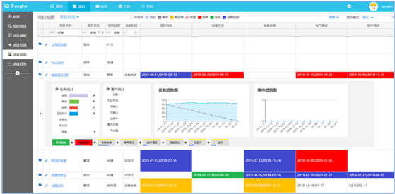 列出所有與自己相關(guān)或參與的項(xiàng)目,能直觀的看到各個項(xiàng)目階段的情況