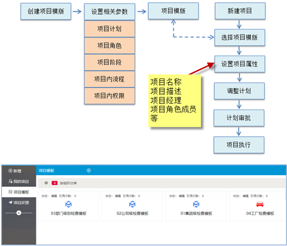 有些企業(yè)項(xiàng)目實(shí)施相對比較規(guī)范或標(biāo)準(zhǔn),其項(xiàng)目計(jì)劃、相關(guān)權(quán)限設(shè)置、流程設(shè)置、階段設(shè)置等都非常相似。新項(xiàng)目可能主要就變更了一下人員。這類項(xiàng)目,我們實(shí)現(xiàn)可以建立項(xiàng)目模版,在項(xiàng)目模版內(nèi)將項(xiàng)目核心參數(shù)(如:項(xiàng)目計(jì)劃、項(xiàng)目權(quán)限、階段等)都先建立好,生成項(xiàng)目模版。新項(xiàng)目的時候,可以通過套用項(xiàng)目模版來新建項(xiàng)目。